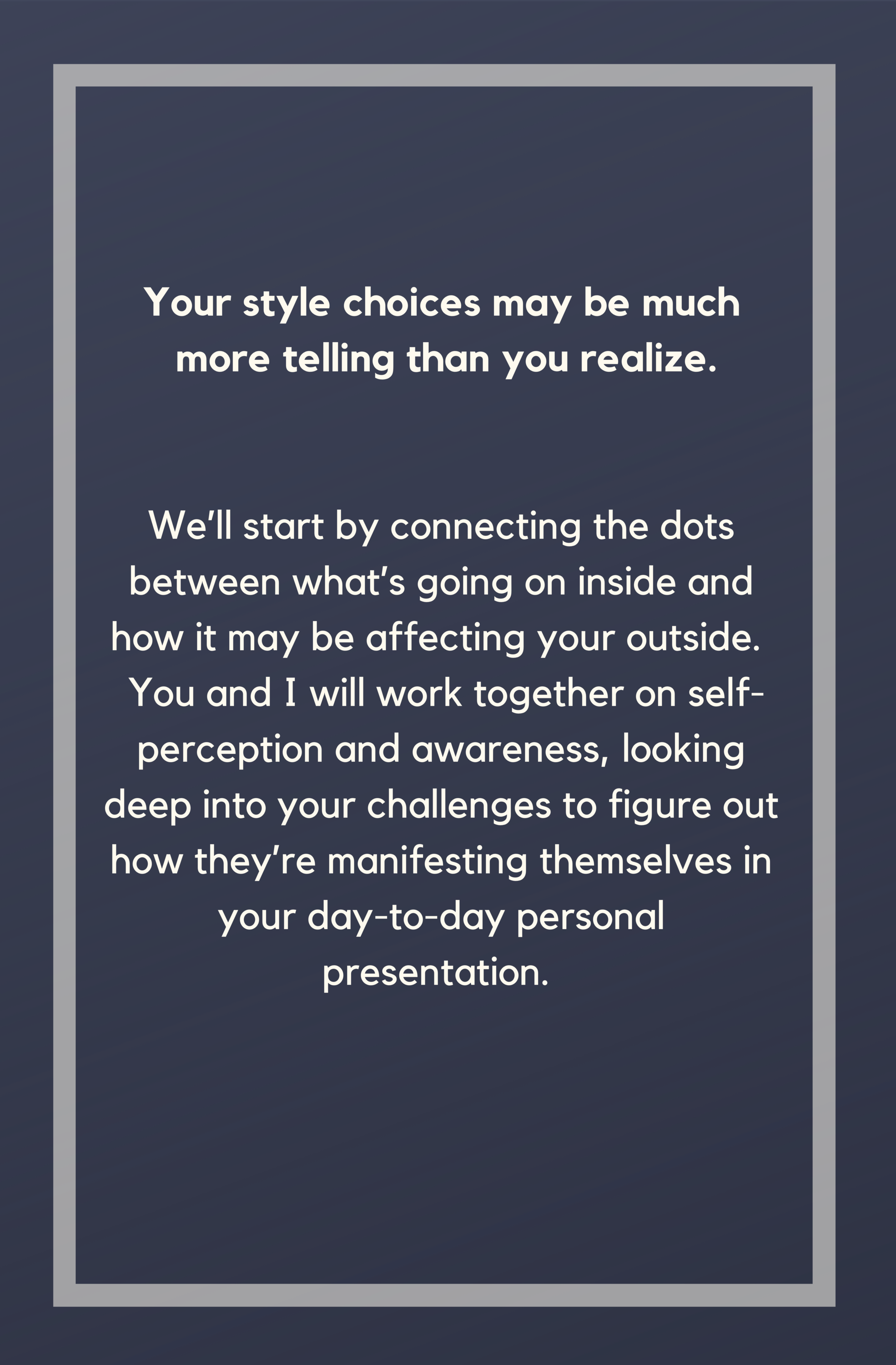 My services focus on style therapy, personal styling and