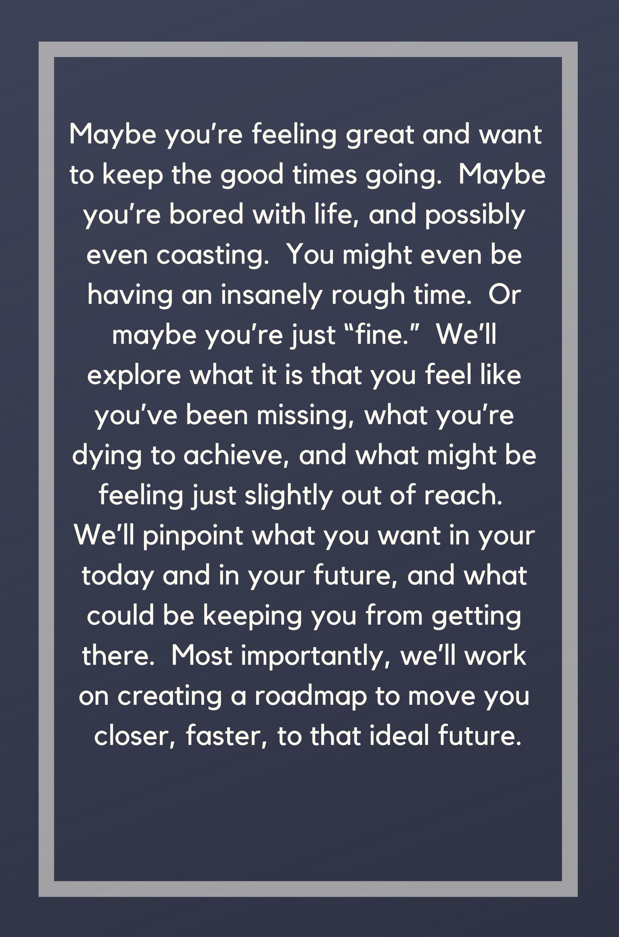 Want to know more about me?  Let's set up a time to chat.